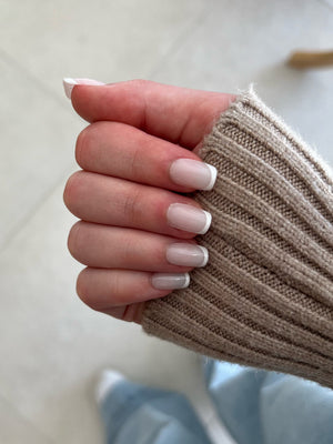 Elevate your nail game with Snow Bunny, featuring a dreamy milky base, and classic french tip. The perfect length for the office girls, these will give you a timeless yet modern look in minutes.